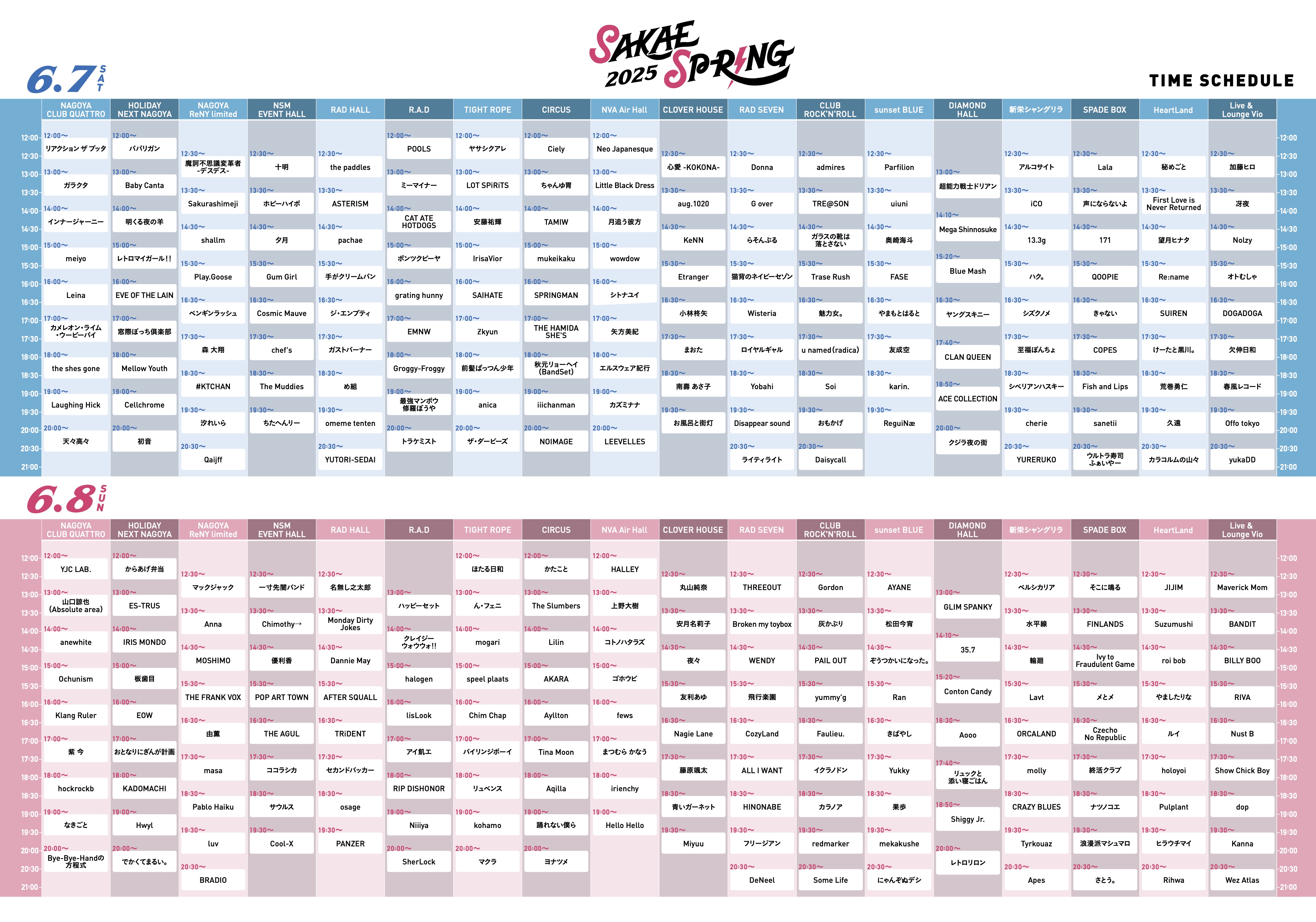 ■SAKAE SP-RING 2025 全出演アーティスト出演日(50音順)